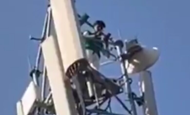 टावर पर चढ़कर युवक का हाईवोल्टेज ड्रामा,पुलिस ने सकुशल नीचे उतारा